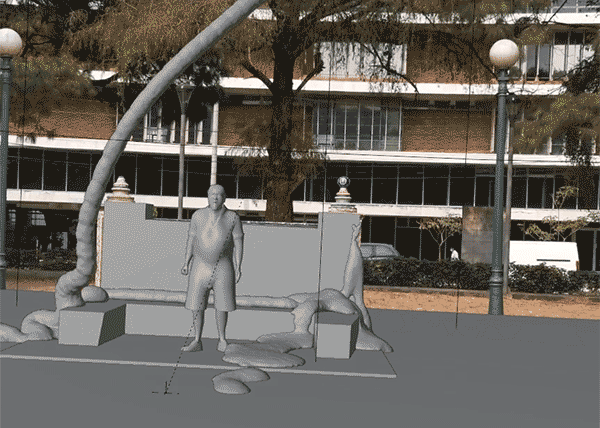 Así que después de hacer el “match moving” o “motion tracking” de la escena, reconstruí la banca en 3d para las colisiones y creé una simulación de líquidos viscosos con “Flip Fluids”.